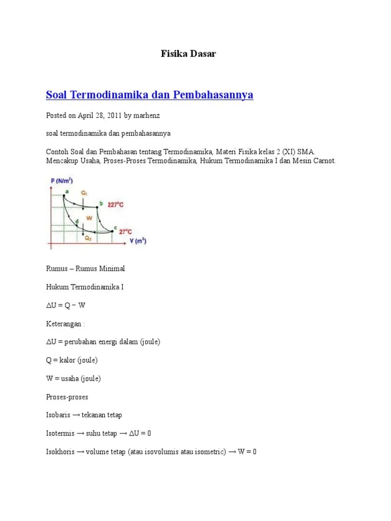 Entropi yaitu salah satu besaran termodinamika yang mengukur energi dalam sistem per satuan temperatur yang tak dapat digunakan melakukan usaha. Contoh untuk sistem tertutup ini adalah sejumlah gas dalam silinder tertutup. Welcome to bimbel pak bilcen :dkali ini kita akan mempelajari contoh soal dari usaha 1 siklus:suatu gas ideal mengalami proses tertutup . ✓pengertian ✓hukum 1 2 3 ✓rumus ✓contoh soal. Termodinamika berfokus pada perubahan energi dalam, tetapi bukan nilai .